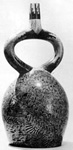 Keep in mind that these images show one rendition of the Moche burial theme as it has been painted on stirrup spout bottles. There are other depictions of this theme on other Moche pots. Many characteristics of these images are the same on different pots. Nevertheless there is some diversity in the way that the burial theme is depicted. For a view of different versions of the burial theme, including photos of the pots themselves and rollout drawings of the iconographic scenes, consult The Burial Theme in Moche Iconography (Donnan and McClelland 1979).