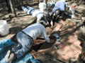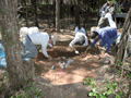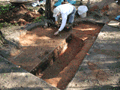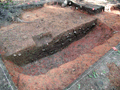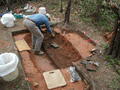 Excavation Summary The Bowers site (RLA-SOC 617) was the first to be studied by the Catawba Project. Located atop a high ridge flanking the Catawba alluvial valley, this site represents a log cabin that probably was part of the early nineteenth-century Catawba community called Turkey-head and mentioned by Robert Mills in Statistics of South Carolina (1826, pp. 115, 601). It was first discovered by Steve Davis and others as part of a high school project in 1970 and was re-located by shovel testing February 2002. One of the shovel tests hit the top of a rectangular cellar pit that measured 1.2 x 1.8 m at the top and was 0.3 m deep. The fill excavated from the cellar yielded over 2,000 artifacts, including Catawba burnished pottery (representing pans, bowls, jars, and a cup), pearlware sherds, clay pipe fragments, glass fragments, brass buttons, lead shot, a snaffle bit, glass beads, and other unidentifiable metal artifacts. Several of the Catawba rimsherds were decorated with a reddish-orange commercial paint. This excavation was important for two reasons. First, it gave us our first excavated sample of artifacts from a Catawba cabin site. Second, it gave us important information about what a late eighteenth-century-early nineteenth-century Catawba site should look like archaeologically and what kinds of field methods might be most appropriate for finding such sites.