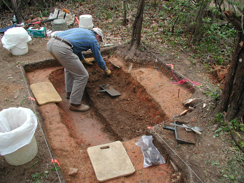 Brett Riggs is excavating the east half of Feature 1.