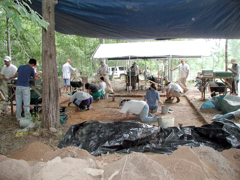 Students are troweling the top of Level 2, an ancient soil layer that predates the Catawba occupation.
