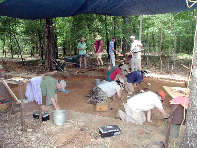 Students are cleaning the excavation block for photography and mapping.
