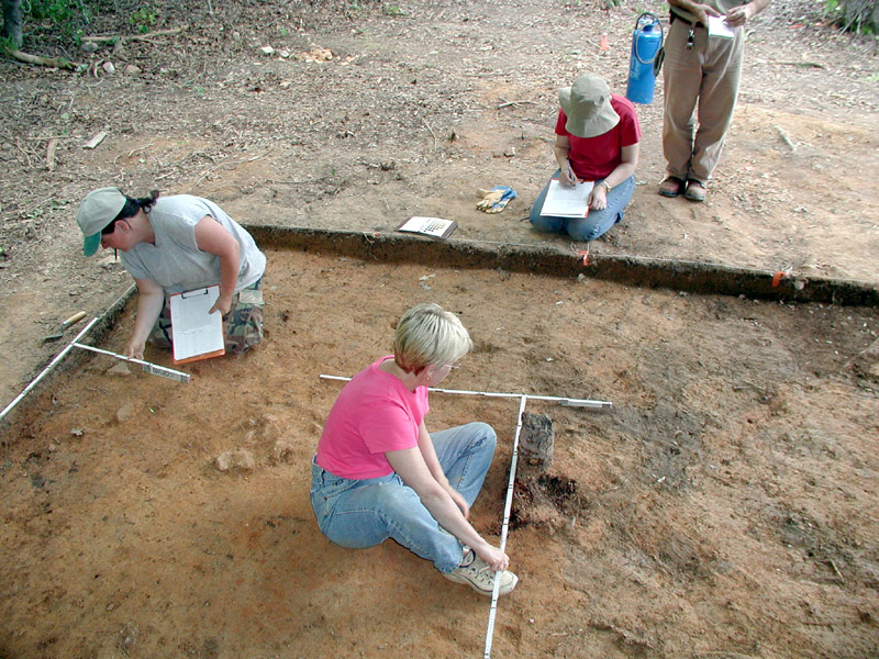 Michelle Schohn, Charlene Brummitt, and Ellen Sedman are mapping soil disturbances at the top-of-subsoil level.