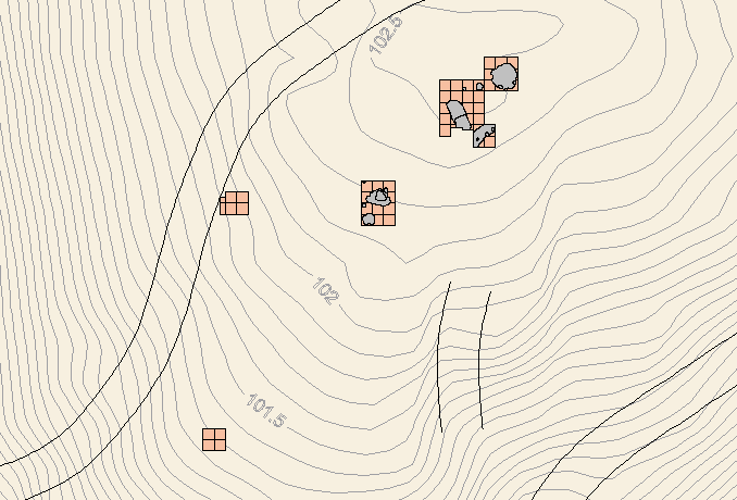 Map showing the areas excavated at Locus #3 at Catawba New Town.