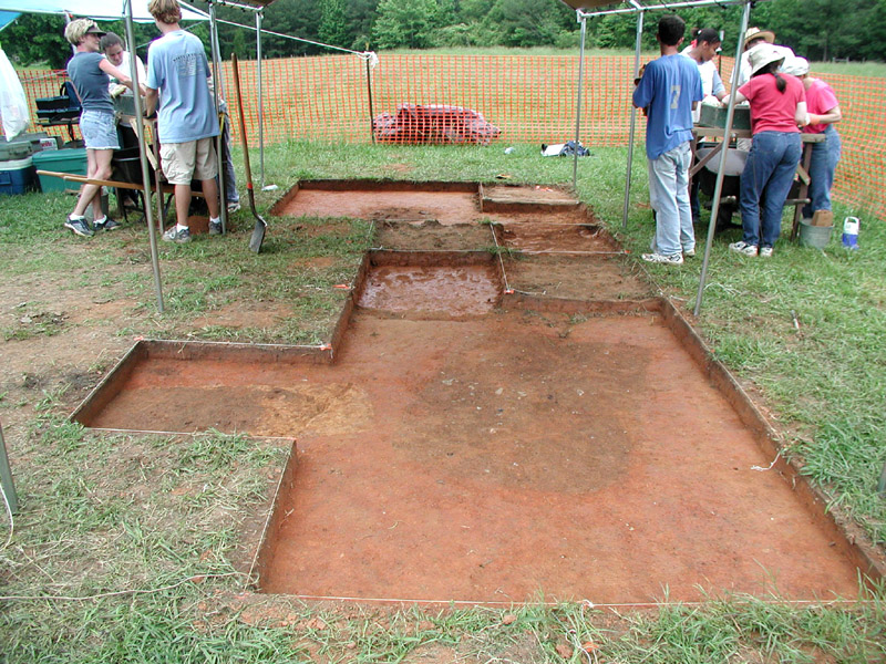 View of the expanded excavation block containing Features 1, 2, and 3. Features 2 and 3 can be seen in the foreground. Work in this block is not yet completed.